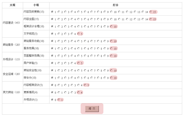 3.进入系统后对细项进行打分即可,温馨提示,红色标注为最高分